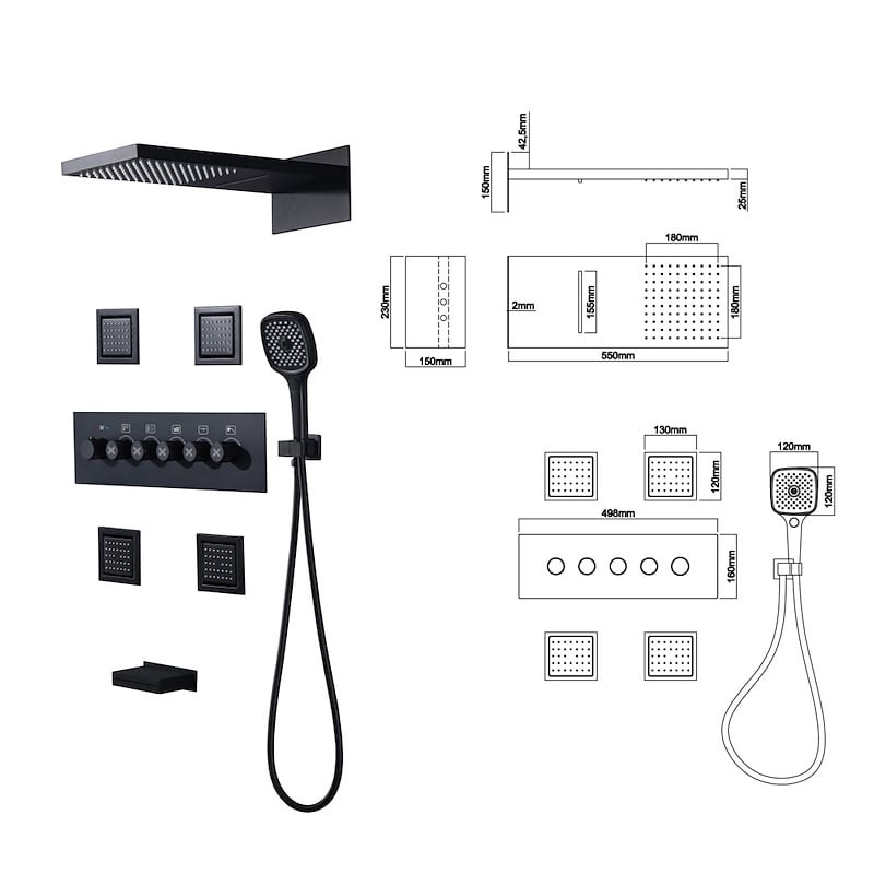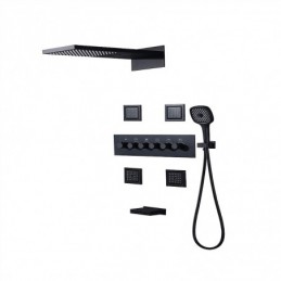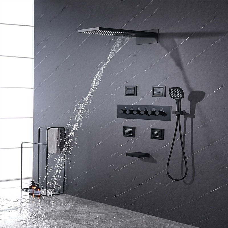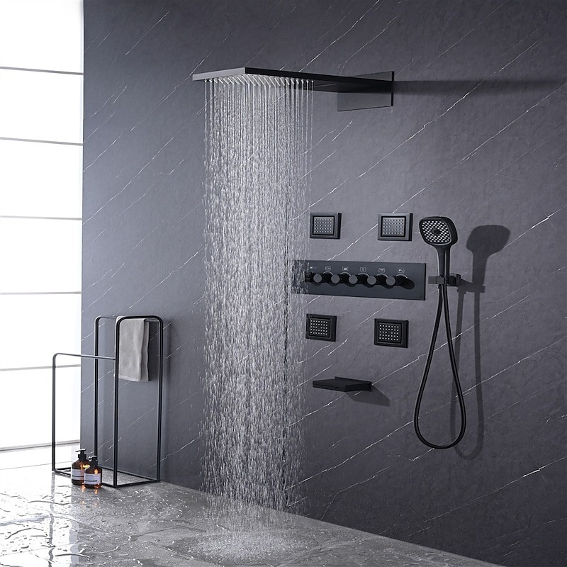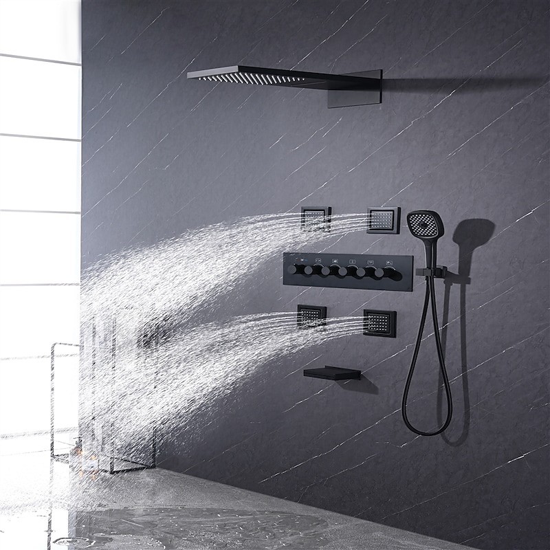 Style :Contemporain,Caractéristiques :Douche à jets multiples,Douche à effet pluie,Cascade,Type de robinet :Système de pommeau de douche à effet pluie,Massage par jet corporel,Vanne mélangeuse thermostatique,Type d'installation :Montage à l'intérieur,Type de vanne :Vanne en laiton,Finition :Finitions peintes,