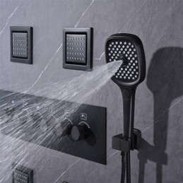 Système de douche à effet pluie Mélangeur thermostatique à 5 fonctions Jet corporel Massage Finitions peintes Montage du robinet de douche